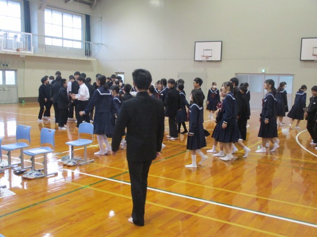 本日、生徒会執行部主催の異学年交流『団対抗!合唱対決!』が行われました。生徒たちは運動会の3団に分かれ、校歌と生徒会の歌『Let’s try 今』を歌いました。どの団も工夫を凝らし、それぞれが、みんなで楽しめる発表をつくり上げていました。これまで練習してきた成果を発揮し、笑顔があふれる素敵な交流の時間となりました。この経験を、今後の学校生活にも生かし、さらに、よりよい般若中学校をつくっていってほしいと願っています。