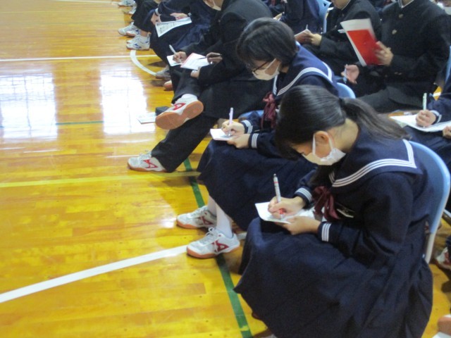 今後の取組に生かしていきたいと思います。※写真は、上から1年1組保健体育、1年1組英語、ふたば・かがやき学級理科