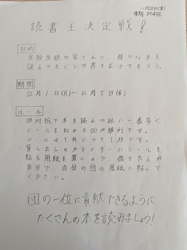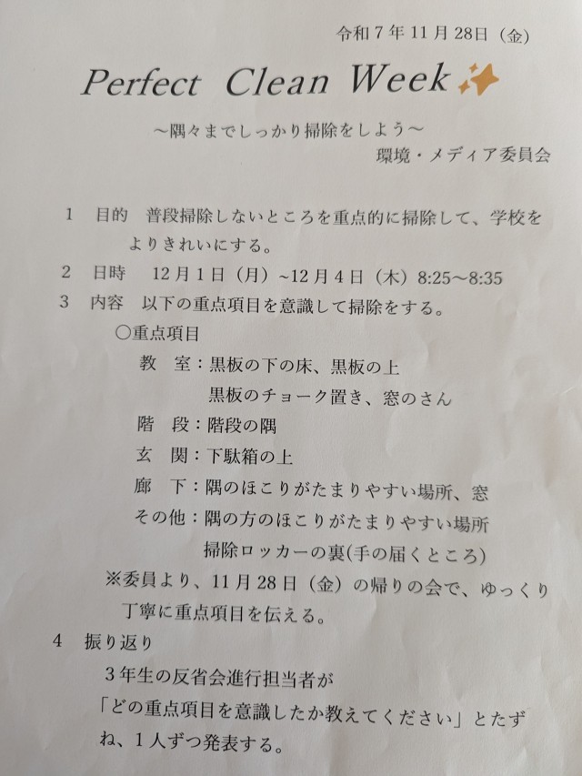 11月28日(金) 生活委員会主催【団別そうじ最終日】