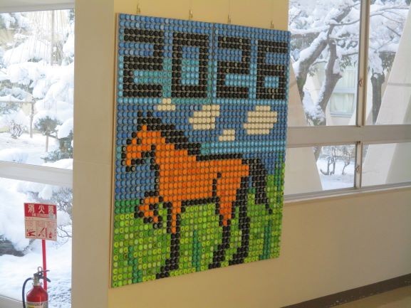 生活文化部のみなさんが制作したペットボトルキャップアートが、新しくなりました。