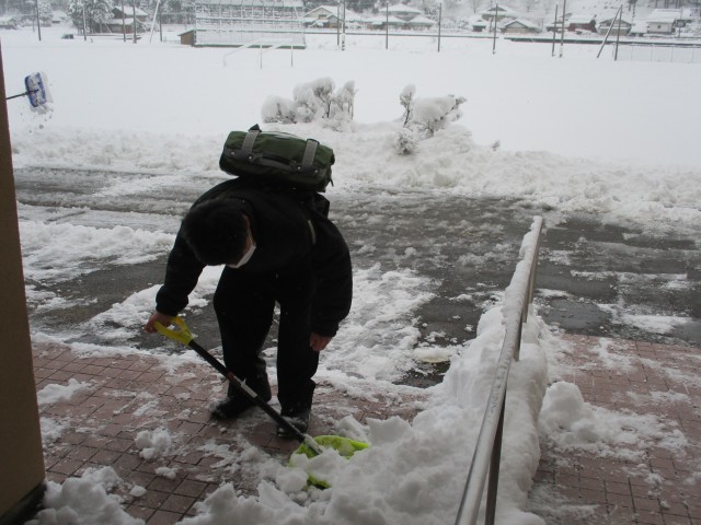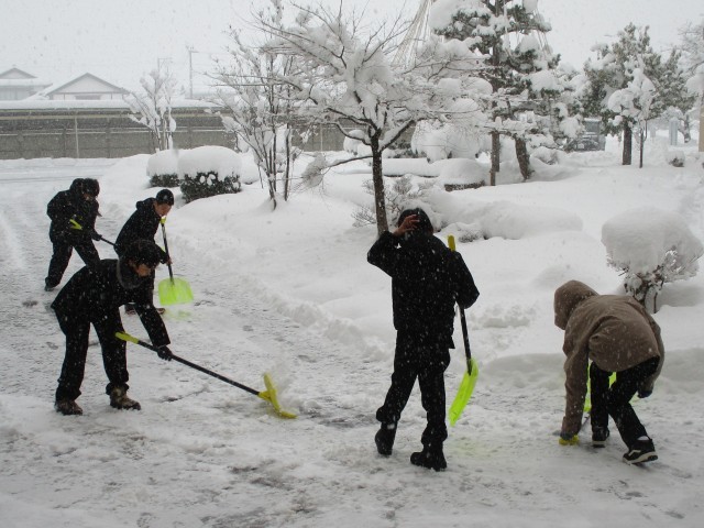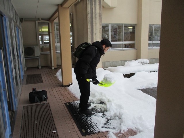 今朝、登校後に有志の生徒がボランティアで雪かきを行ってくれました。