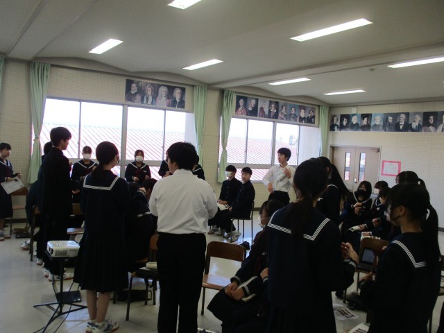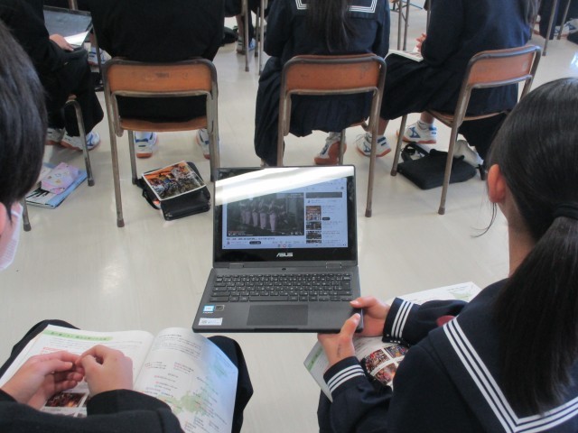 2年生は、これまで調べてきた高校について、プレゼンテーションソフトを使い、グループごとに発表を行いました。どのグループも、学校の概要や特色等を工夫して分かりやすくまとめていました。発表を通して、自分の進路について考えるよい機会となりました。