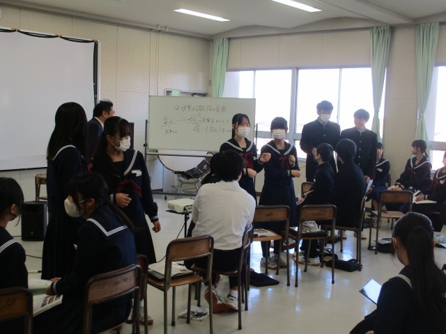 12月18日(木) 2年生 音楽科【世界の諸民族の音楽と地元(富山)の音楽を比べ、その違いをつかもう】