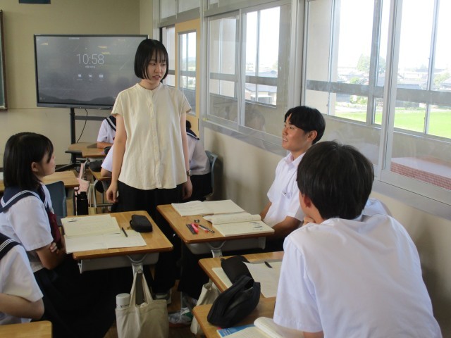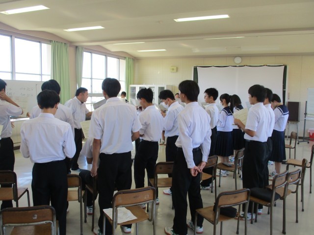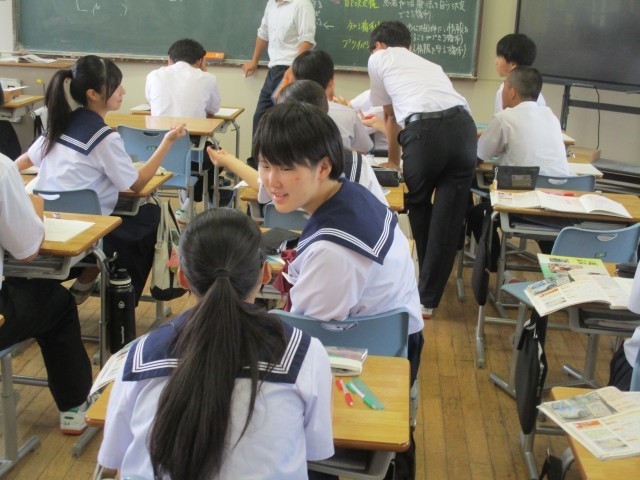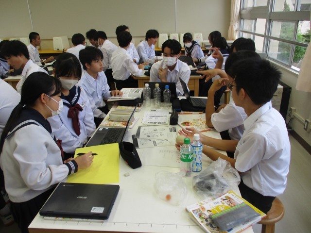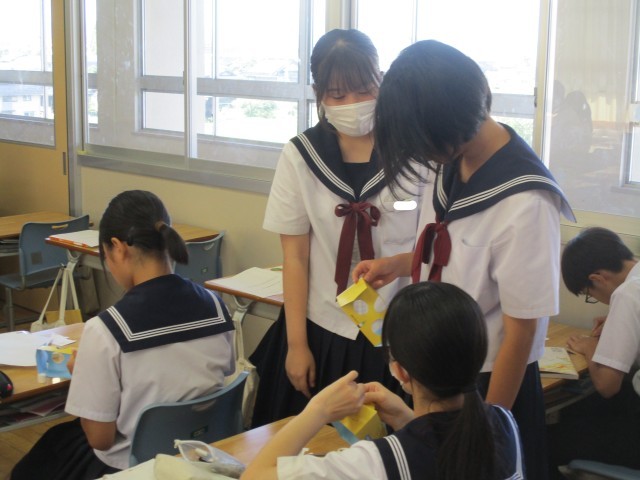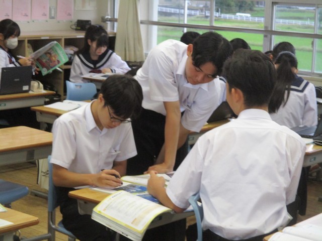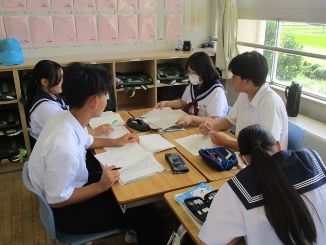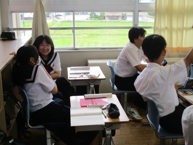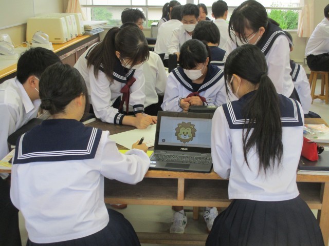 3年生は、10月28日に園児との交流を予定しています。今日は、グループごとに、園児と一緒に楽しむ遊びを考えました。どの生徒も笑顔で意見を出し合いながら、楽しそうに話し合いを進めていました。