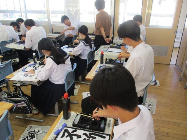 10月2日(木) 3年生 国語科【行書で四字熟語を書き上げました】