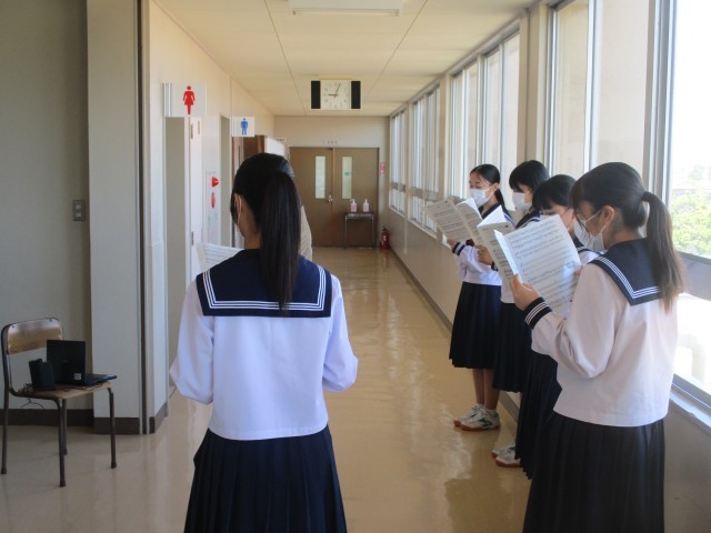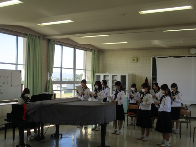 3年生の音楽科の授業です。25日の文化祭に向けて、本番を意識した練習に取り組みました。音楽室には、心のこもった歌声が響いていました。本番では、これまでの練習の成果を存分に発揮してくれることを期待しています。