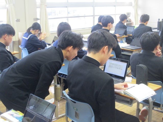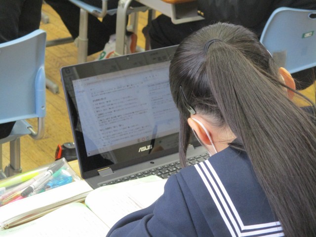 • 12月9日(火) 3年生 英語科【発表原稿を考えよう】
