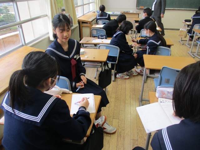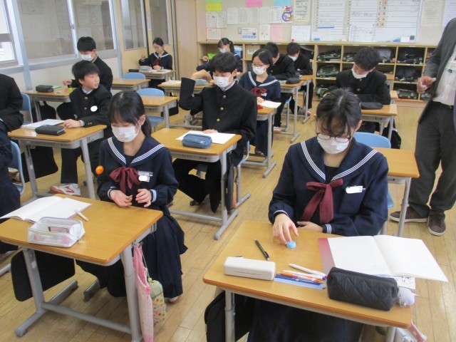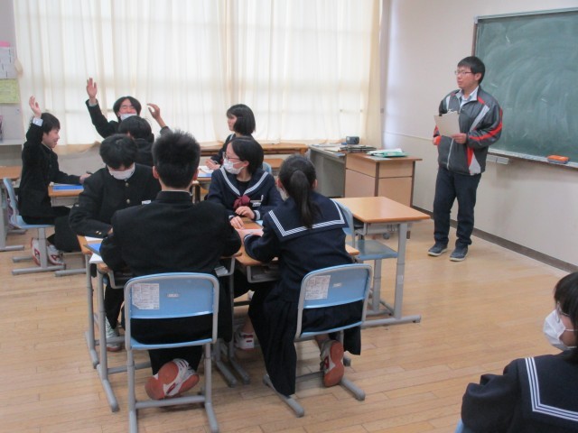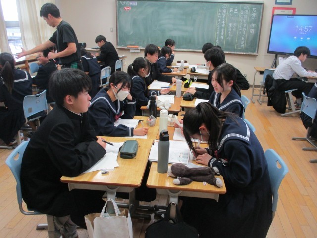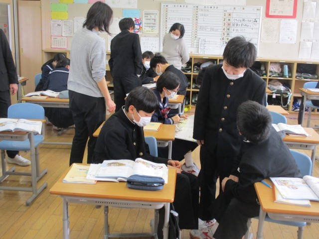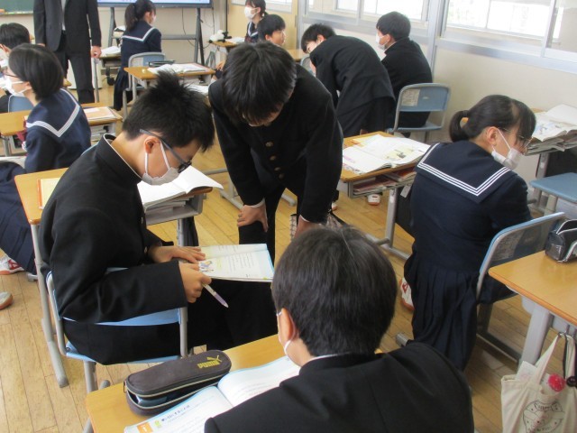 どの学級も、いつもの担任とは違う先生との授業となりましたが、生徒たちはすぐに打ち解け、普段とは少し違った雰囲気の中で、意欲的に学習に取り組んでいました。