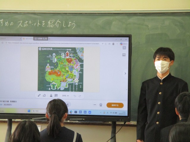 2月20日(金) 2年生 英語科【「ALTにおすすめの場所を紹介しよう」の発表会】