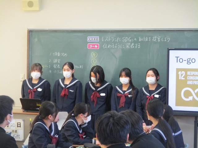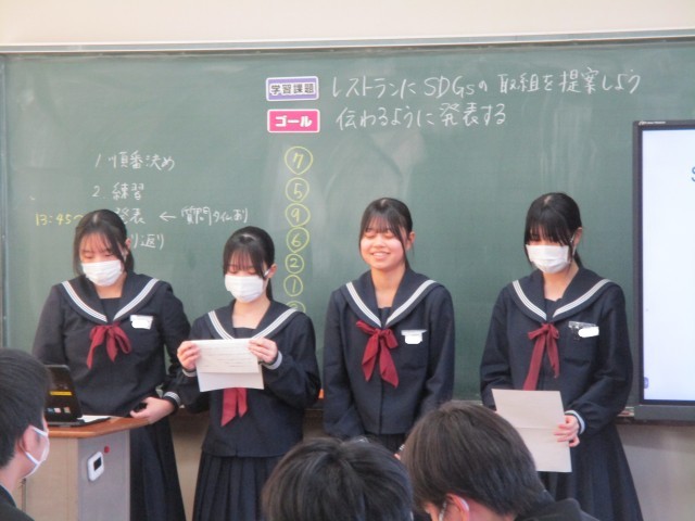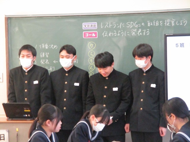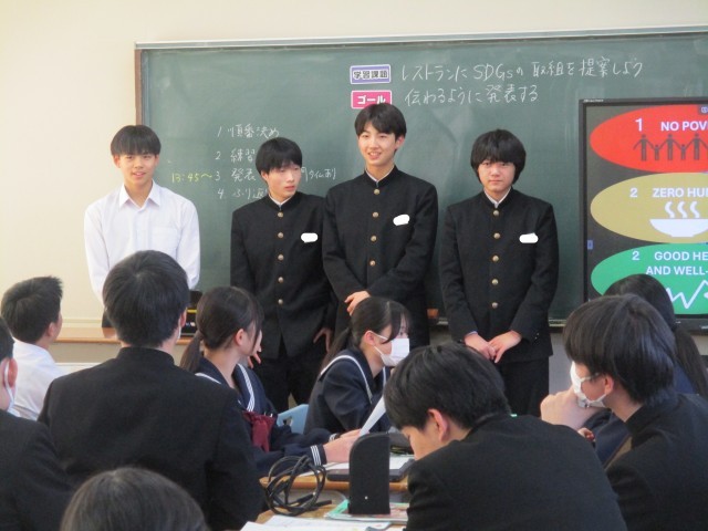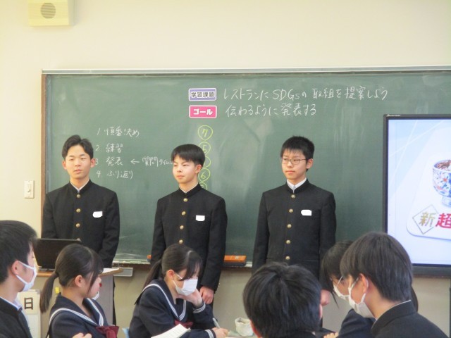 2月20日(金) 3年生 英語科【「レストランにSDGsの取組を提案しよう」発表会】
