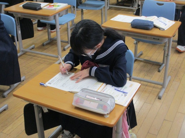 1年生の国語科の授業では、随筆を書く学習に取り組んでいます。今日の学習課題は「書くテーマを決めよう」です。これまでの自分の体験を振り返りながら、題材を考えました。自分でじっくり考えたり、友達や先生と相談したりしながら、少しずつテーマをしぼっていきました。これからどのような随筆が仕上がるのか、楽しみです。